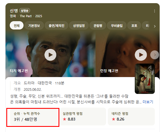 💡 핵심 분석: '신명'의 50만 관객 돌파는 제한된 스크린 수와 상영 횟수의 한계를 뛰어넘은 기적적 성과입니다. 시민 참여형 제작과 화제성 있는 소재가 만들어낸 새로운 흥행 모델의 탄생을 보여줍니다.